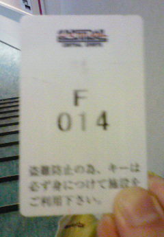 受付でロッカー用のカードキーを渡されるんですが、渡されたカードの番号が「Fー014」ですよ